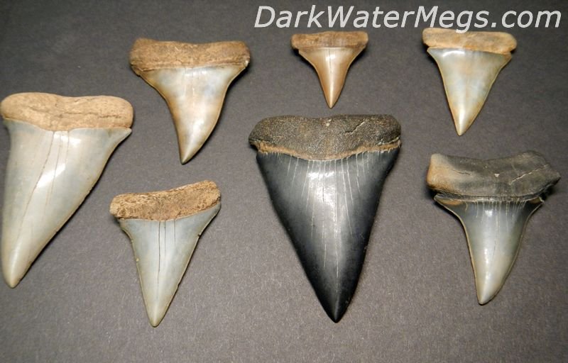 Pictures of fossil shark teeth from DarkWaterMegs.com