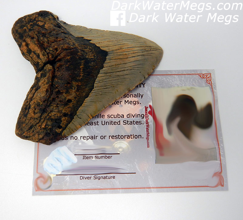 If you would like a certificate of authenticity with your megalodon or other fossil you can request and purchase one here. These certificates of authenticity are only available for teeth purchased from Dark Water Megs and certificates cannot be issues after a tooth has shipped. The Dark Water Megs Certificates of Authenticity have seven unique elements that would individually be difficult to reproduce, and combined would be almost impossible to forge. There is no such thing as a perfect certificate of authenticity, but I did my best to ensure that the certificate will be easily associated with your tooth and provide provenance for many years to come.